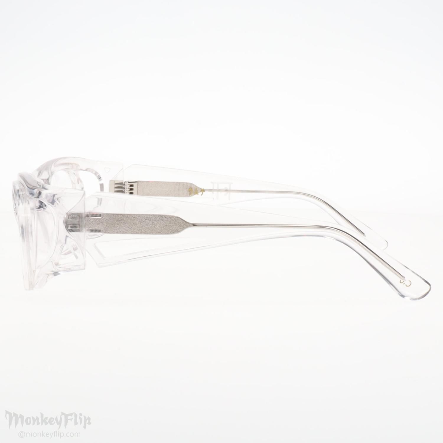 歪み等防止の為、レンズ部分に透明のレンズ型プラスチックがはめ込んであります。